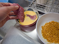 豚肉を卵牛乳につけ、